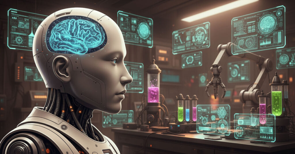 Geração de áudio, texto, código, dados ou decisões em ambientes controlados